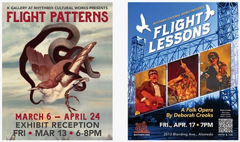 Speaking of successes: the opening for bird-themed art exhibit I curated, Flight Patterns, went great. A bunch of people showed up (thank you!), mingled and bought some of the great art on display. The exhibit is up in Rhythmix’s K Gallery through April 24 and you can both see it live on April 17, by appointment or preview it online HERE.